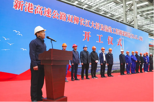 湖北交投雙柳長江大橋有限公司黨委書記、總經理、總監理工程師汪西華宣布開工