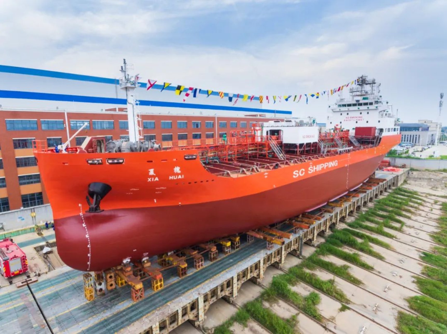 9月19日上午,由武昌造船為上海君正船務(wù)有限公司建造的 7200DWT化學(xué)品船3號(hào)船離廠,7200DWT化學(xué)品船4號(hào)船下水,不斷吹響保交船攻堅(jiān)戰(zhàn)的勝利號(hào)角.上海君正船務(wù)有限公司監(jiān)造部部長(zhǎng)劉仁杰,武昌造船黨委委員、副總經(jīng)理田軍及相關(guān)單位人員出席下水和送船活動(dòng)。