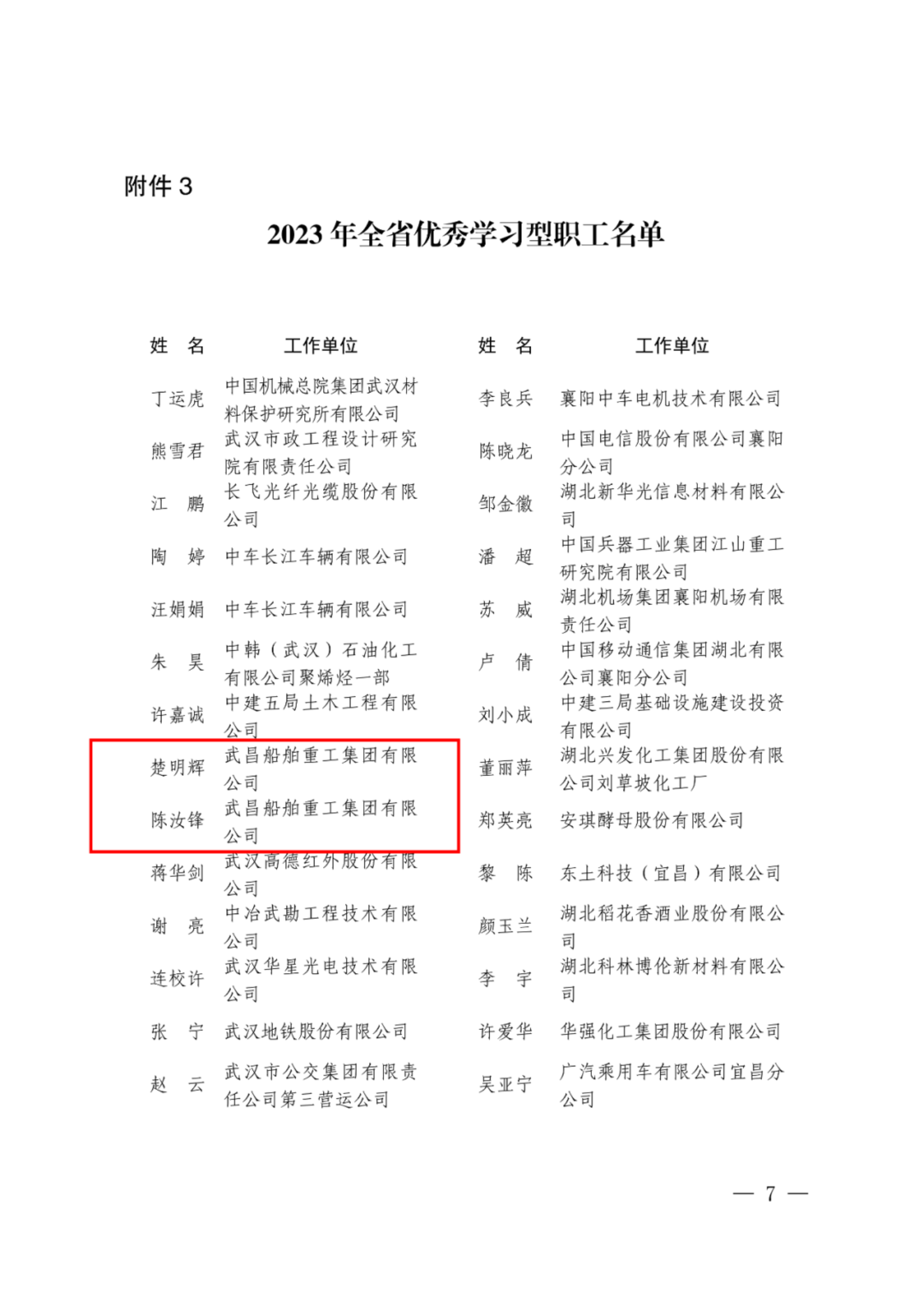 為深入推進產業工人隊伍建設改革,落實職工職業技能提升暨職工素質賦能提質行動,充分發揮工會在高技能人才培養中的示范、輻射和帶動作用,湖北省總工會和武漢市總工會對省市多名優秀帶徒名師和學習型職工進行通報表揚,希望各位優秀帶徒名師能夠繼續發揮傳幫帶作用,培養造就更多高技能職工;各位學習型職工再接再厲,勤于學習,苦練技能,加快成長為高技能人才。