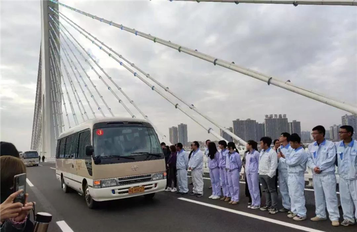 12月19日上午9時,由武船重工股份承建的廣東省清遠市北江四橋正式通車,通車儀式在橋面上舉行。