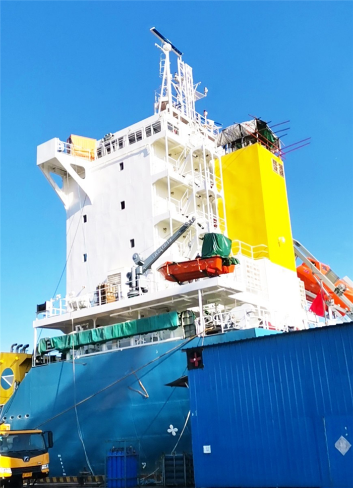 據(jù)悉,700TEU多用途集裝箱船-2 船計(jì)劃于本月底交付。為保證產(chǎn)品進(jìn)度,生產(chǎn)運(yùn)行部24小時(shí)駐扎碼頭緊盯生產(chǎn)。截至今天下午2點(diǎn),該船的桅桿和煙筒已經(jīng)重新安裝完成,比原定恢復(fù)計(jì)劃提前2天。