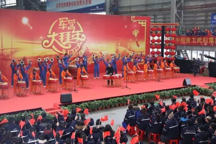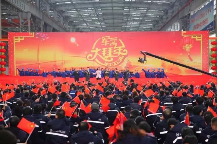 超贊,部隊文藝輕騎兵來襲!歡聲笑語,歌舞飛揚!武船集團鐵骨鋼架的雙柳基地四聯跨廠房,帶你感受不一樣的《軍營大拜年》!文藝輕騎兵精彩的演唱、雜技、京劇、書法,帶你感受燃爆武船的熱鬧氣氛。武船人的歡慶鑼鼓、朗誦《無悔軍工人》、歌曲《龍船調》,向你訴說著軍工人的別樣情懷:當你成為武船人的那一刻,你就選擇了星辰大海的征途。武船人和軍人一樣“能打仗、打勝仗”,多少風雨奔波,多少風霜堙沒,都不曾熄滅武船人興船報國的誓言,激勵武船人牢記使命、勇擔重擔、矢志強軍。身后有祖國和人民的凝眸,心中的國永遠比家大!