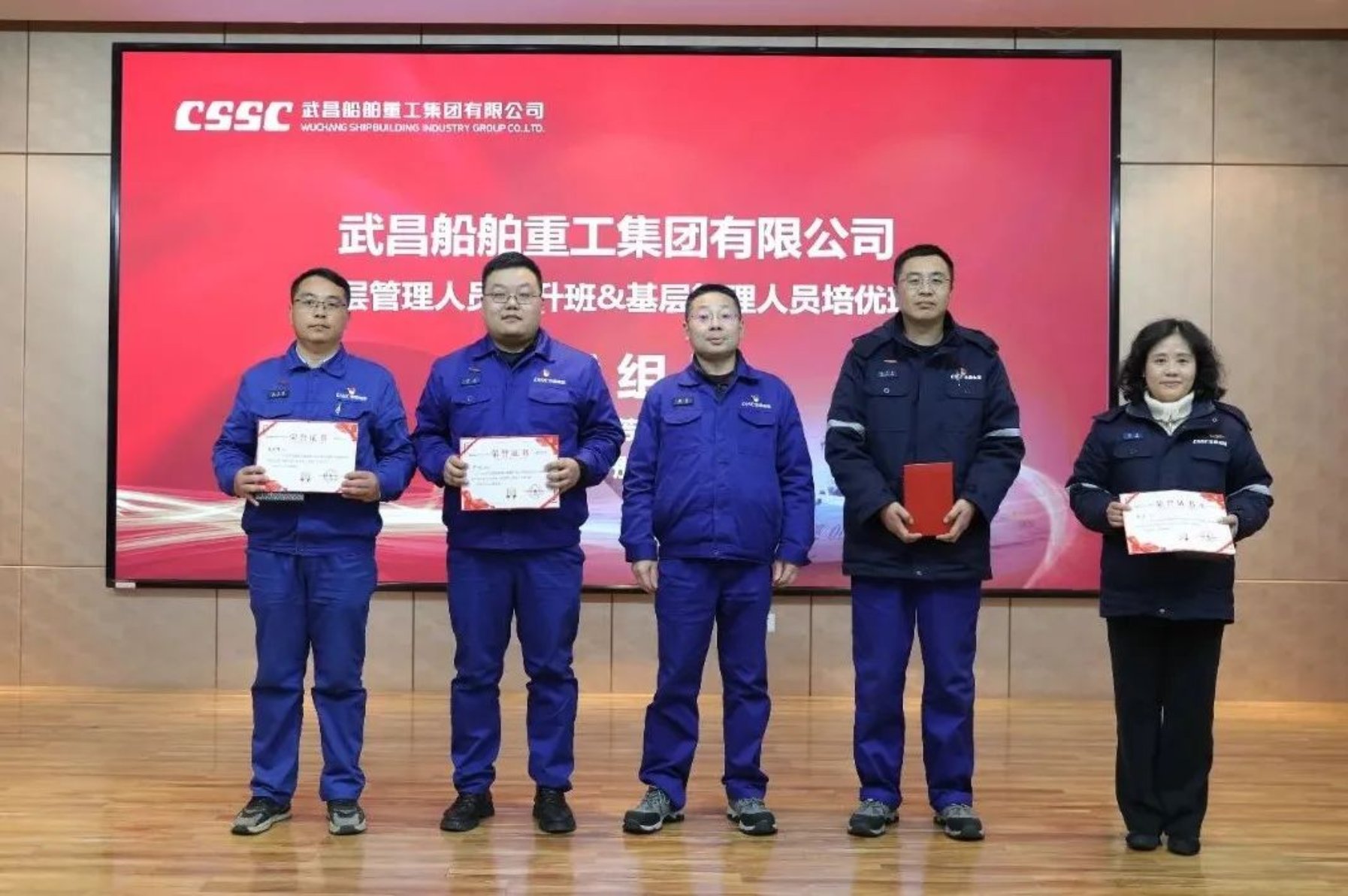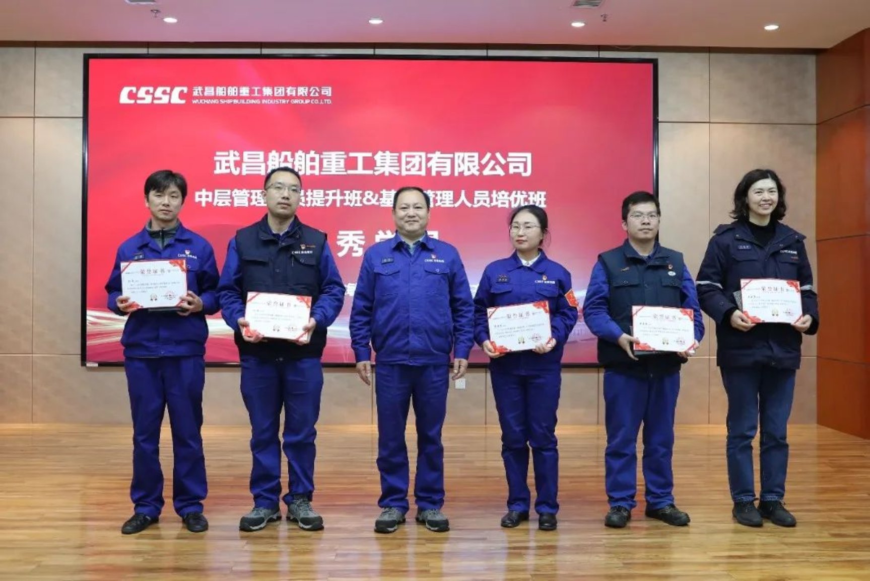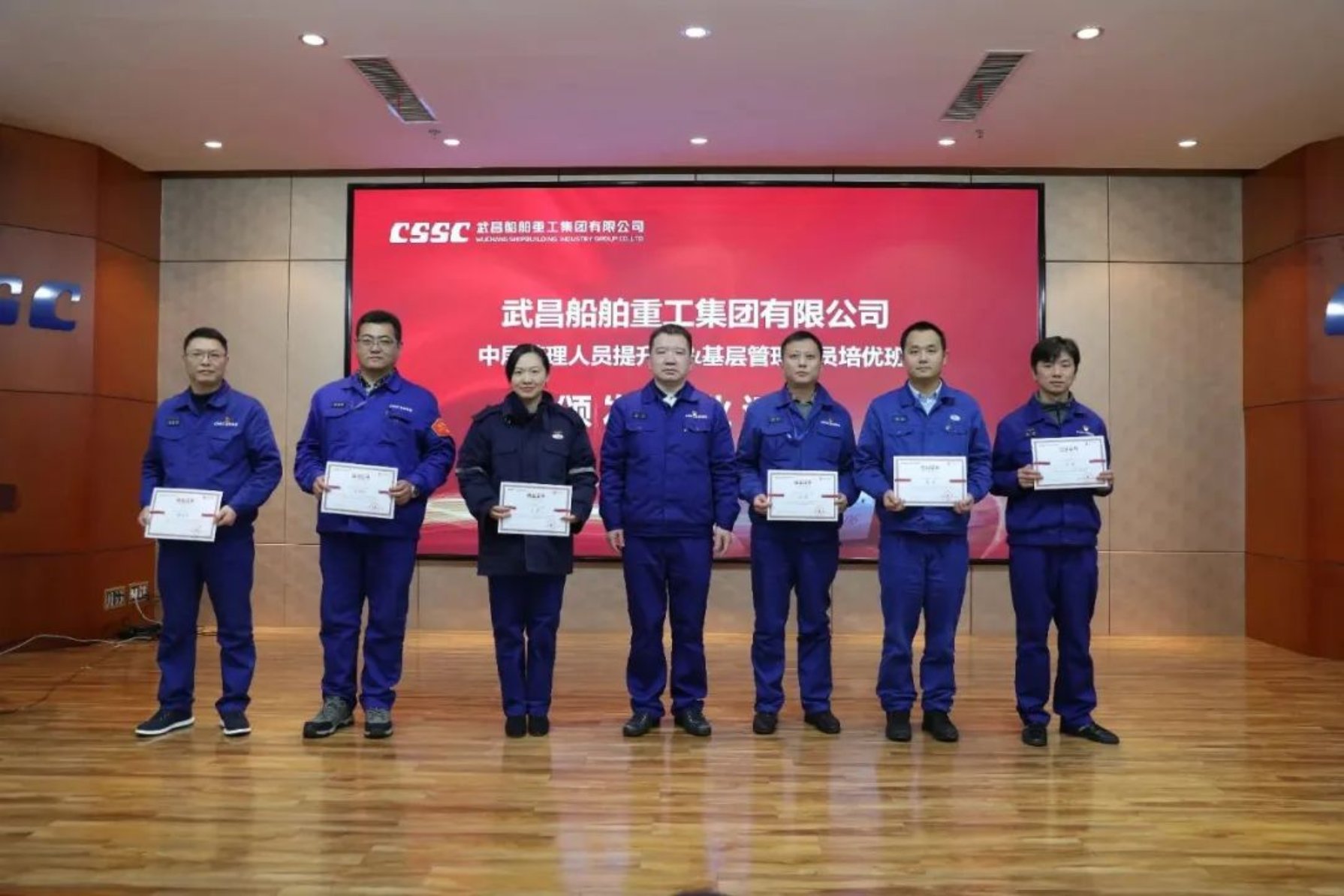 12月14日,中國船舶集團武昌造船首屆中層管理人員提升班、基層管理人員培優班結業典禮在創新樓12樓武船講堂順利舉行。公司黨委書記、董事長姜濤,黨委委員、副總經理田軍,黨委委員、副總經理、總工程師唐瀅出席結業儀式,培訓班全體學員參加結業典禮。