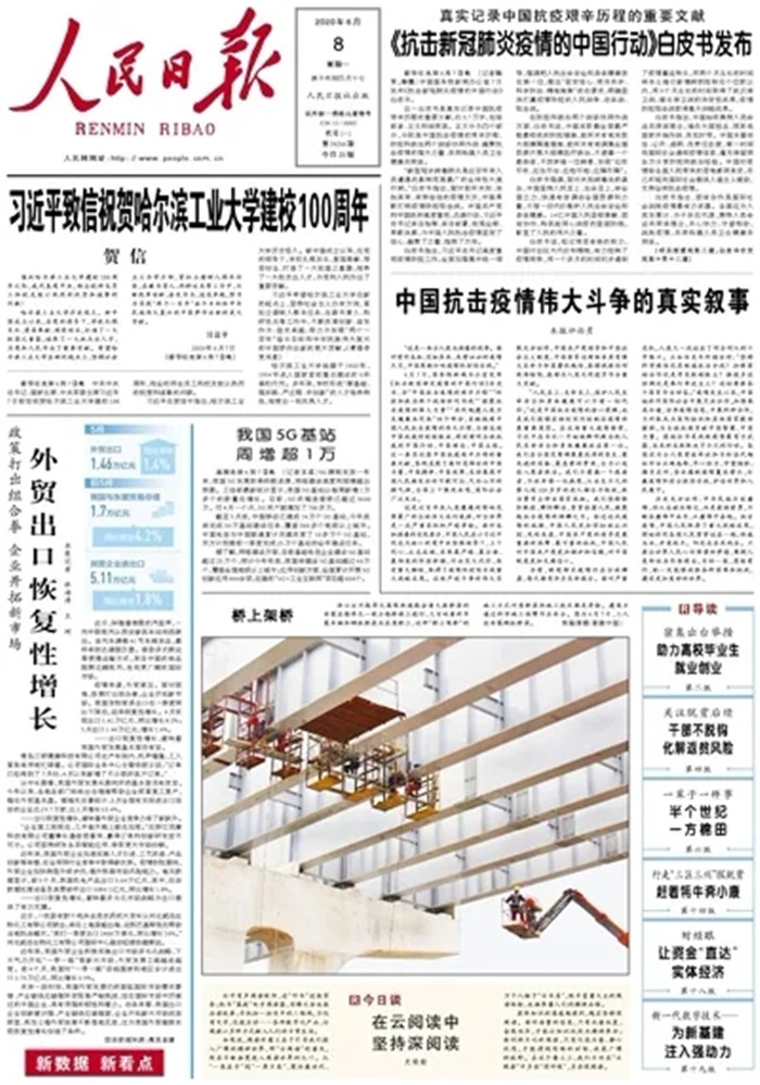 圖為6月7日,工人在進(jìn)行鋼梁對接作業(yè)(人民日報)