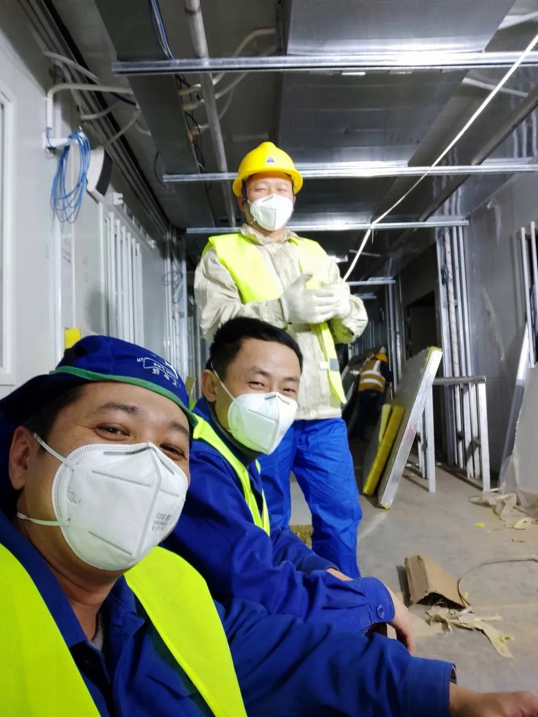 為了不耽擱一分一秒,饑腸轆轆的他們沒能顧上晚飯,第一時間找到防疫指揮部現(xiàn)場施工負(fù)責(zé)人進(jìn)行對接,詳細(xì)了解材料設(shè)備領(lǐng)用、存放、施工技術(shù)要求等現(xiàn)場施工狀況。