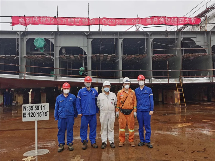 北船重工項目部精心組織,精密部署,周密協調,精益施工,抓主線,理流程,合理編排計劃,對重點項目進行重點編排施工計劃,合理規避交叉作業及避免返工施工。同時,管理人員下沉生產一線,在提前梳理、汲取32.5萬噸礦砂船1、2號船經驗的基礎上,全面投入到現場施工及報驗工作,加大與船東船檢溝通協調力度,嚴把檢驗關口,提高報驗效率和頻率,最終實現了該船碼頭系泊調試有效周期僅為57天,刷新了該系列船舶最短碼頭施工周期。