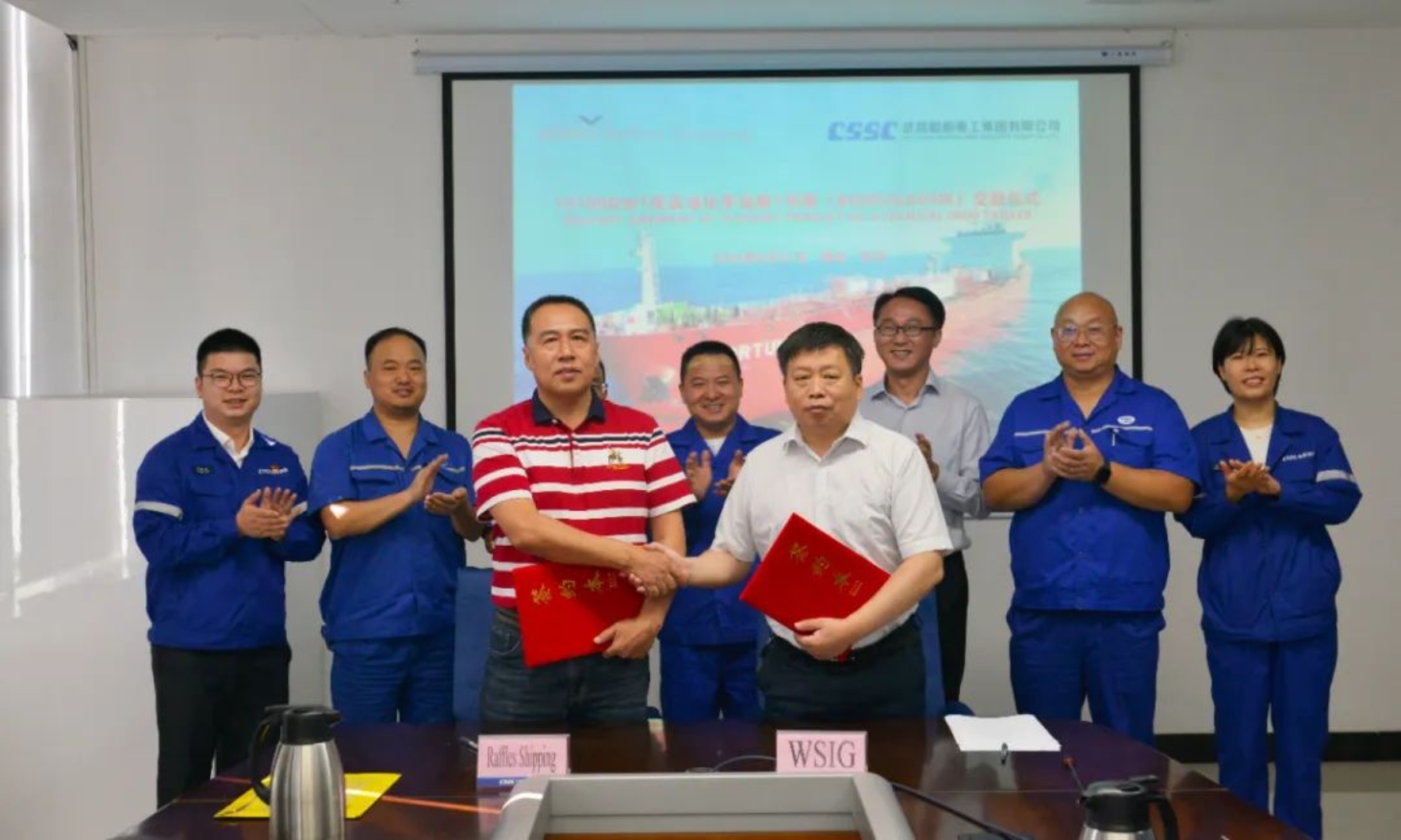 8月31日上午9時,中國船舶集團(tuán)武昌造船為新加坡萊福士航運(yùn)集團(tuán)建造的 19700載重噸化學(xué)品船1號船 正式簽字交付!船東代表、上海富洋以及武昌造船的相關(guān)領(lǐng)導(dǎo)和嘉賓出席交船儀式。
