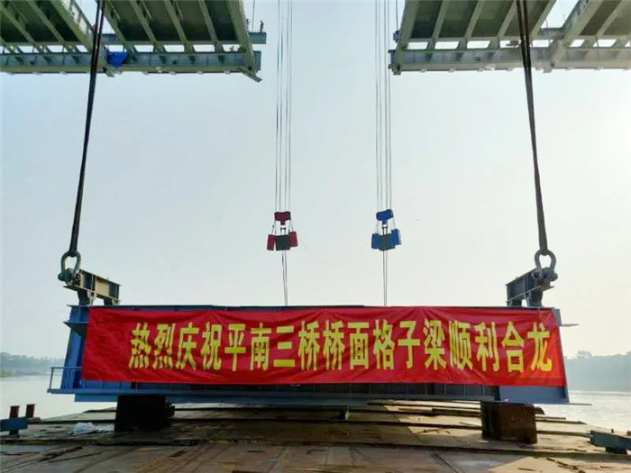 9月1日上午11時(shí),隨著最后一節(jié)格子梁精準(zhǔn)落位,吊裝成功,中國船舶武船集團(tuán)武船重工股份承建的廣西平南三橋橋面格子梁順利合龍。至此,全橋15000余噸主橋鋼結(jié)構(gòu)全部安裝完成,主橋南北實(shí)現(xiàn)貫通,為年底全橋建成通車奠定了基礎(chǔ)。