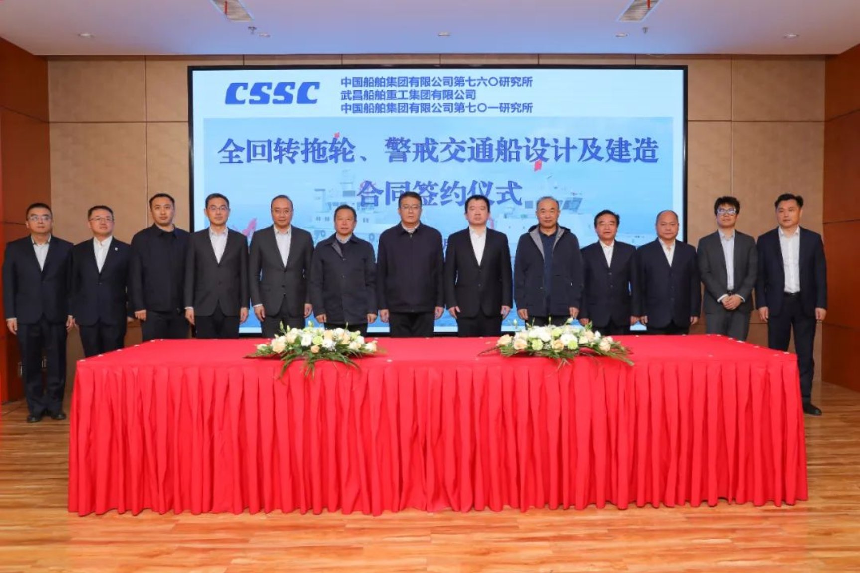 11月30日下午,中國船舶集團第七六〇研究所與中國船舶集團武昌造船、中國船舶集團第七〇一研究所在武昌造船舉行“全回轉(zhuǎn)拖輪、警戒交通船設(shè)計及建造”項目簽約儀式。