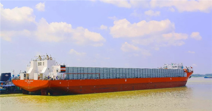 新13000噸甲板運輸船,總長約130米、型寬26米、型深8米,載重量13000噸,設兩臺主機,單機最大功率1600kW,航速10.4節(jié),為無限航區(qū)自航駁船,全鋼制焊接結(jié)構(gòu)。