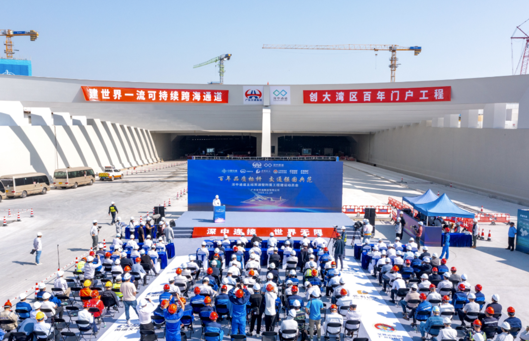 貫通儀式在西人工島舉行,武昌造船重工公司相關(guān)負(fù)責(zé)人受邀參加貫通儀式。武昌造船重工公司承制的深中通道G03標(biāo)包含伶仃洋大橋的一半(深圳側(cè)的一半和合龍段J段)及東泄洪區(qū)非通航孔橋,鋼箱梁總重約9.77萬噸,是深中通道項(xiàng)目橋梁鋼結(jié)構(gòu)中最大標(biāo)段。